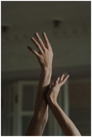 Artistic capture of hands reaching gracefully in a minimalist style.