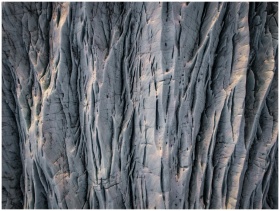 A detailed aerial view of a rugged rock surface wi