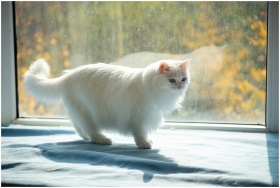 White Cat Sunbathing Window