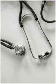 A detailed image of a stethoscope on a white background, ideal for healthcare themes.