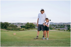 Father and daughter enjoying a day golfing together, illustrating family bonding and leisure outdoors.