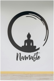 Minimalist wall art featuring a meditation silhouette within a circle and 'Namaste' text.