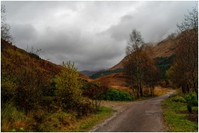 Peaceful autumn pathway in mountainous landscape w