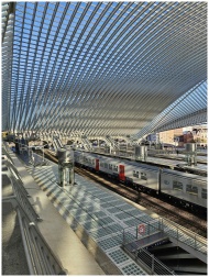 Innovative architecture of Liège-Guillemins railway station in Belgium.