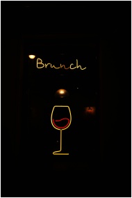 Vibrant neon brunch sign featuring a stylish wine