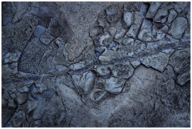 Close-up view of an abstract stone surface displaying natural cracks and textures.