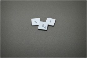 Minimalist image of keyboard keys spelling 'WEB' on a plain background.