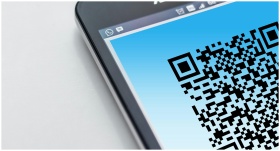 High-resolution close-up of a smartphone displaying a QR code on its screen.