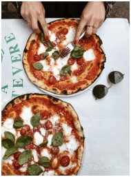 Enjoy a classic Margherita pizza in a Roman restaurant, perfect for a relaxed Italian meal.