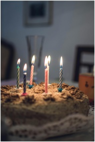 Close-up of a delicious birthday cake with colorfu