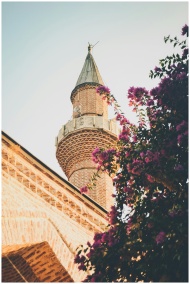 A beautifully captured mosque minaret with colorfu