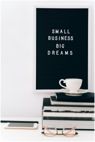 Minimalist workspace featuring motivational board, coffee, and books for productivity.