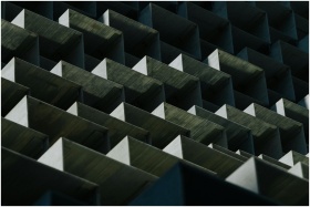 Dynamic geometric pattern of an architectural facade in Toronto, showcasing modern design.