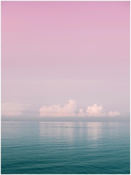 Serene ocean view with pink sky and soft clouds at sunset, perfect for calm and peaceful moods.