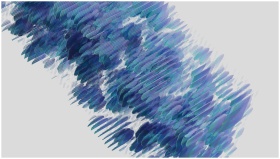 Dynamic abstract art with blue and purple brush strokes on a light background.