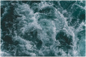 Powerful ocean waves captured from above, showcasing the dynamic movement and blue hues of the sea.