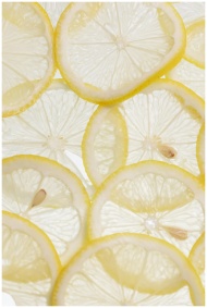 Artistic close-up of translucent lemon slices showcasing texture and freshness on a white background.