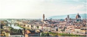 Stunning panoramic landscape of Florence, Italy showcasing iconic Il Duomo and city architecture.