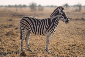 A lone zebra in the vast African savanna captured beautifully at sunset, showcasing nature's beauty.