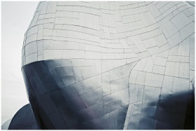 Close-up of modern geometric steel architecture wi