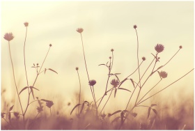 Elegant silhouette of flowers against a soft twilight sky, evoking peace and tranquility.