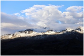 Breathtaking view of snow-capped mountains emergin