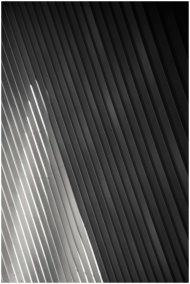 Black and white of textured background representing row of vertical beams with shadow in contemporary house