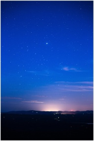 A serene night sky with countless stars sparkling above a dimly lit horizon.