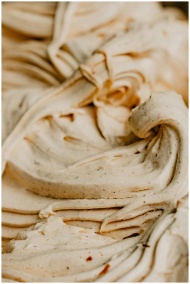 Close-up of a creamy, textured dessert showcasing swirled patterns.