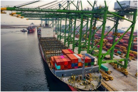 Container ship loading at New Priok Container Term