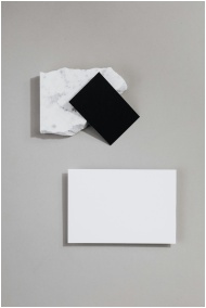Elegant mockup of black and white business cards on marble and grey background.
