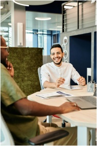 Two young professionals discussing business ideas