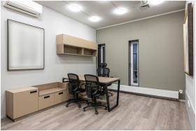 Spacious modern office with minimalist design feat