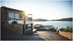 Elegant modern house by the lake with stunning sun