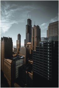 Elevated view of Chicago's modern skyline with the iconic Willis Tower.