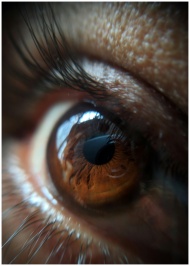 Macro shot of a human eye with focus on iris and eyelashes, displaying rich texture and detail.