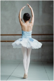 A young ballerina practicing her graceful posture in a ballet studio, showcasing skill and elegance.