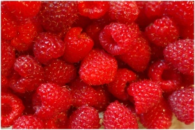 A close-up shot of vibrant red raspberries, fresh
