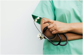 Close-up of a healthcare worker holding a stethosc
