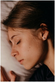 Close-up of a woman's peaceful sleeping face, highlighting rest and relaxation.