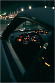 Illuminated car dashboard and steering wheel viewe