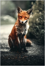 A close-up shot of a red fox sitting in its natura