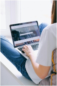 Young woman in casual jeans working on a laptop in