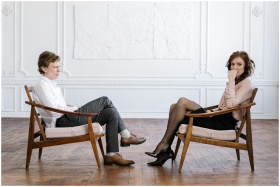 Man and woman in professional consultation setting