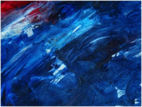 Dynamic abstract art with vibrant blue and red hues creating a textured watercolor effect.