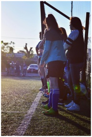 Group of women soccer players standing on the fiel