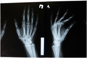 High-resolution x-ray image showing the intricate anatomy of human hands.