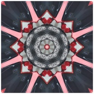 Intricate kaleidoscopic metal design with geometric patterns and bold colors.