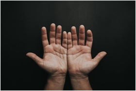A pair of upturned hands displayed against a dark