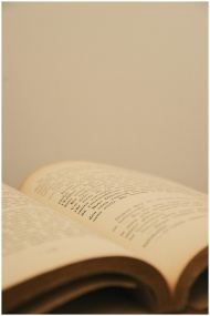 Open book with printed words, photographed in warm